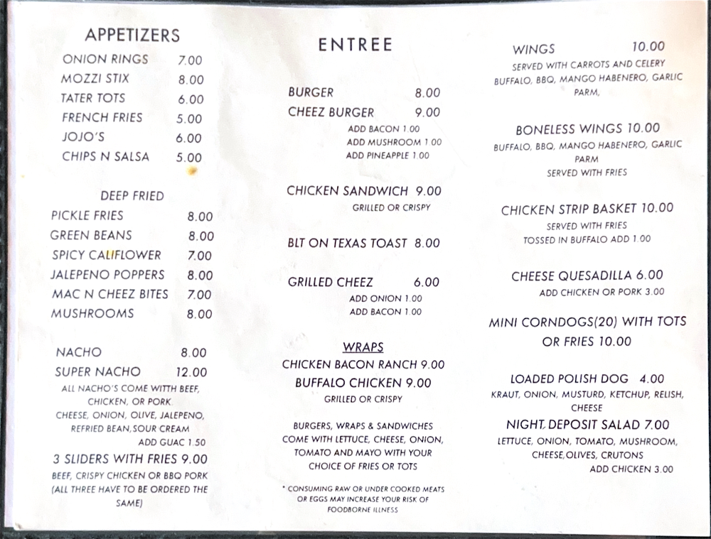 The Vault Bar & Grill Menu (Update 2025)